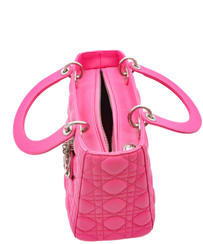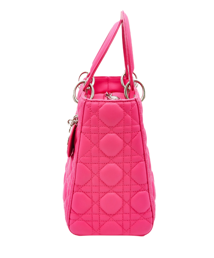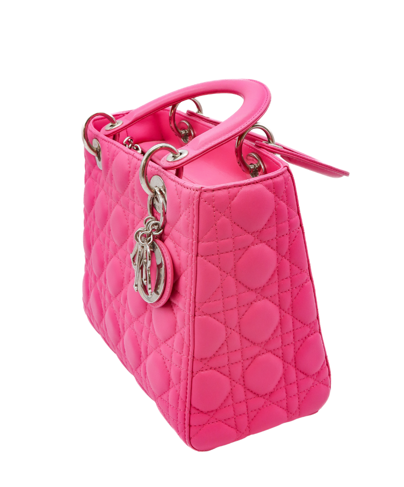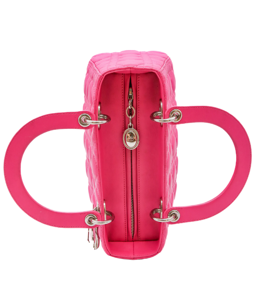 Bold, iconic, and instantly recognizable, the Medium Lady Dior is a true symbol of timeless elegance with a playful, modern twist. Crafted in vibrant hot pink Cannage-stitched leather, this statement piece brings a fresh pop of color that channels unmistakable Barbiecore energy, making it perfect for any season.