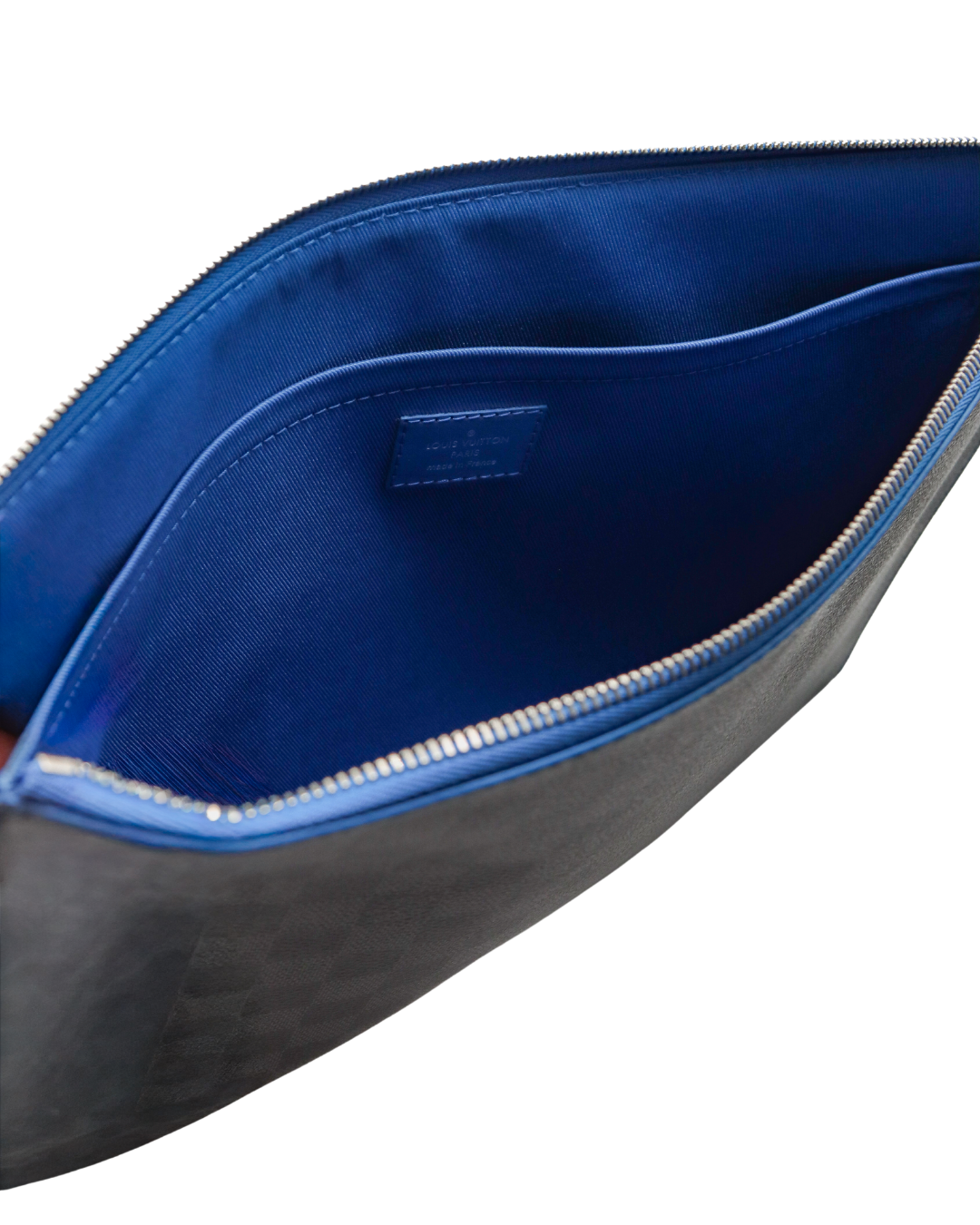 A sleek and versatile essential, the Pochette Jour GM blends modern style with everyday functionality. Crafted in Louis Vuitton’s signature Damier Graphite canvas, this piece is elevated by striking cobalt blue trim for a bold yet refined finish. Designed to transition effortlessly from work to travel, it offers a polished way to carry your essentials.
