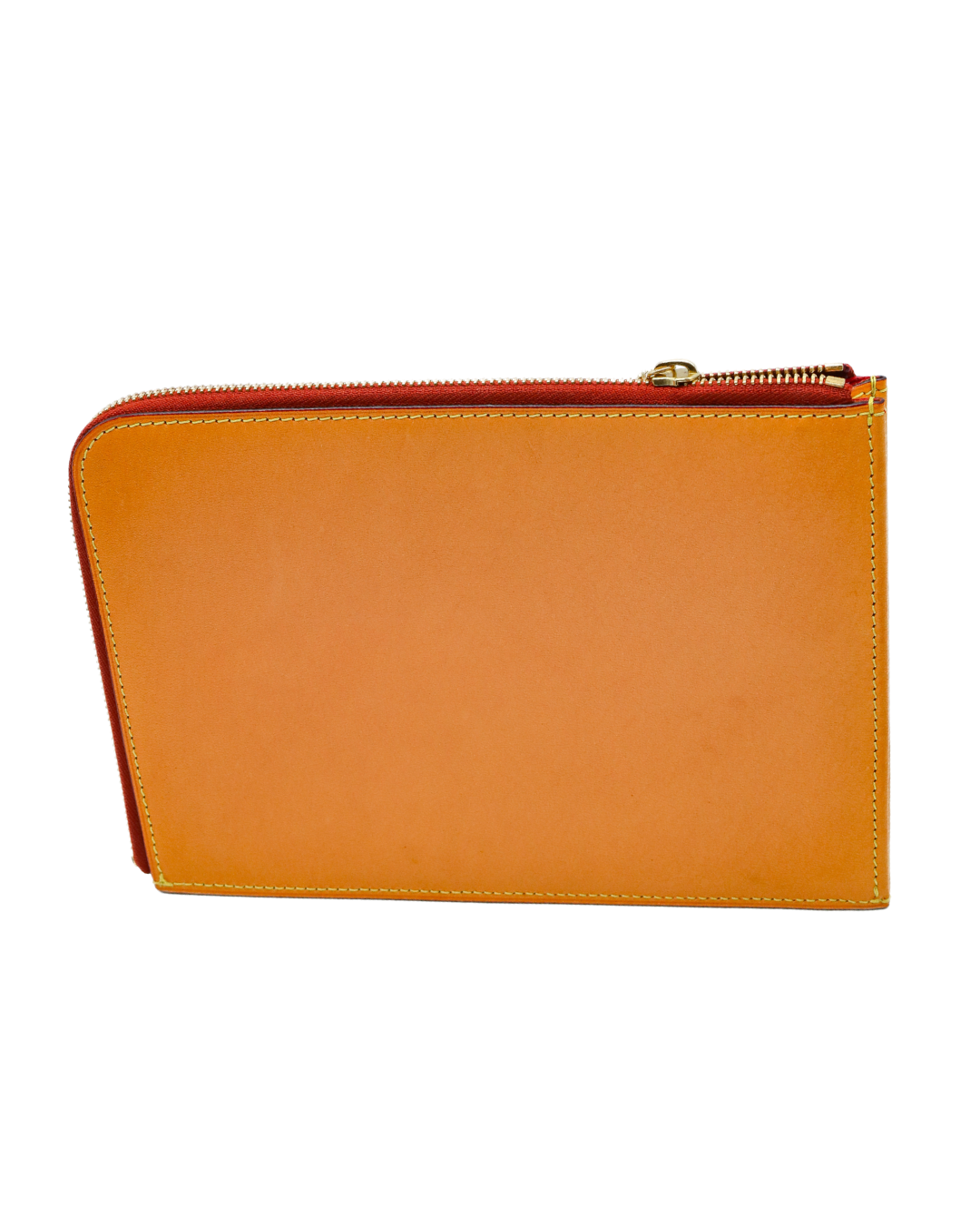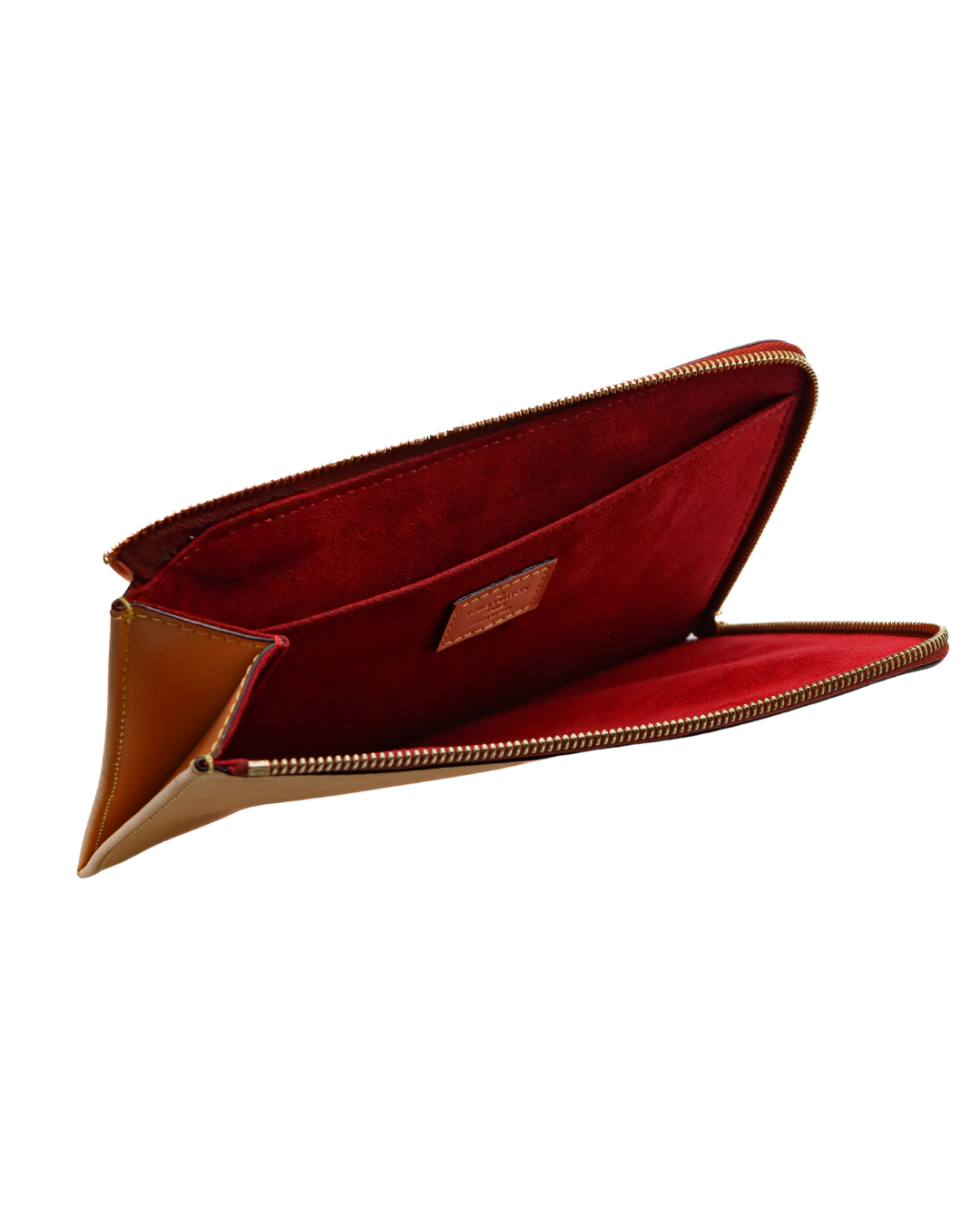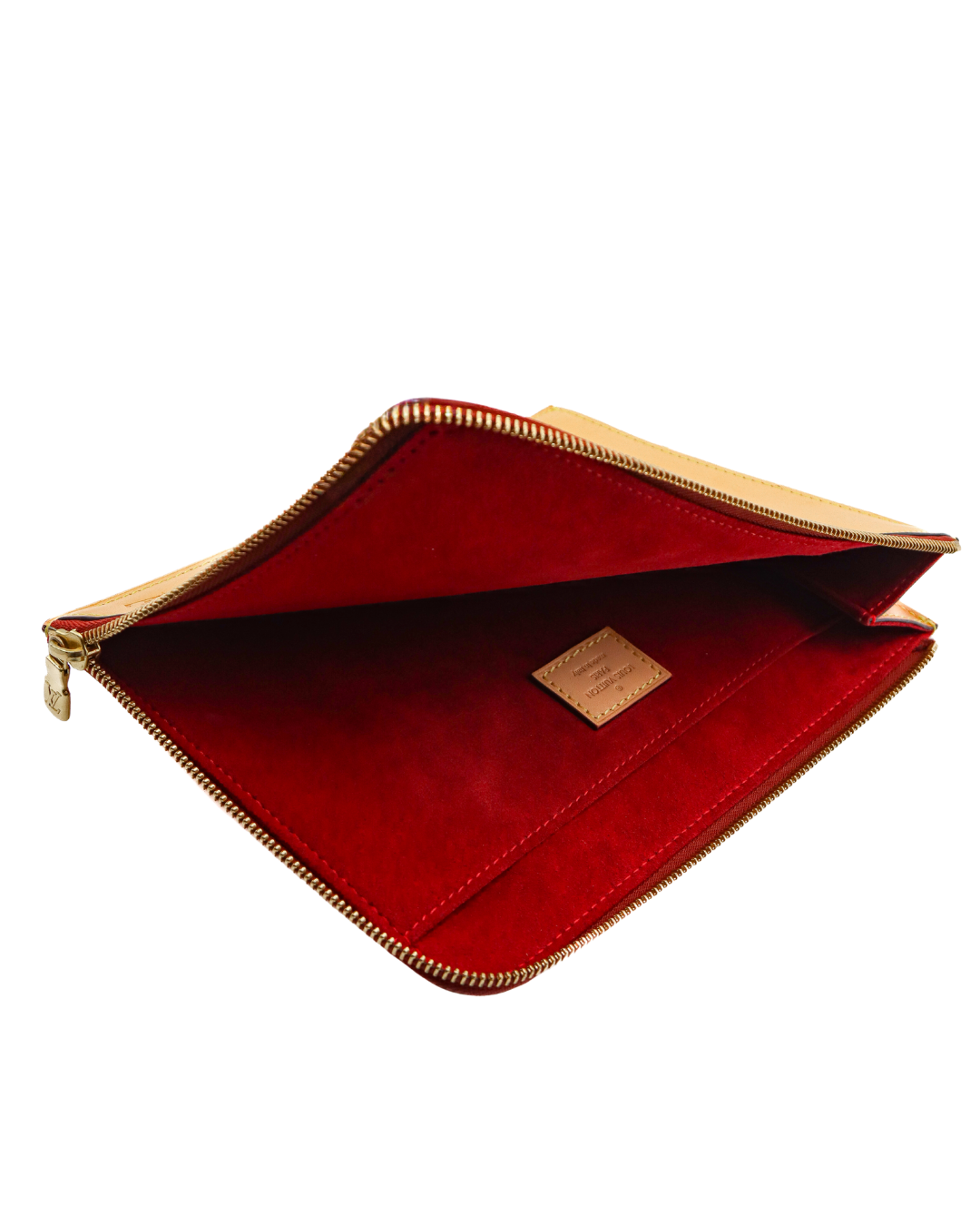Crafted from natural vachetta calfskin, this Pochette Jour PM offers a warm, organic aesthetic that develops a rich patina over time. Paired with a bold red interior, it brings a striking contrast to its minimalist silhouette. Designed for versatility, this slim pouch transitions effortlessly from daily organization to refined carry.